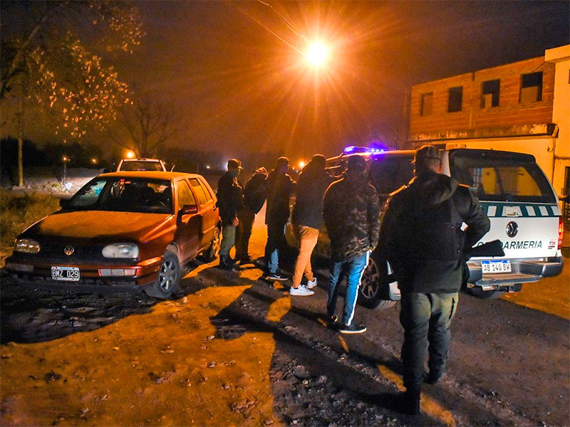 Personal policial que patrullaba en inmediaciones de J. Piazza al 100, escuchó la voz de auxilio de una mujer, interviniendo en el lugar. Se encontraron con personas que lograron escapar por pasillos y terrenos linderos, efectuando disparos para cubrir la huida, aunque lograron aprehender a dos hombres y una mujer. Les secuestraron al menos seis armas de grueso calibre, municiones, estupefacientes y demás elementos de interés para la causa.